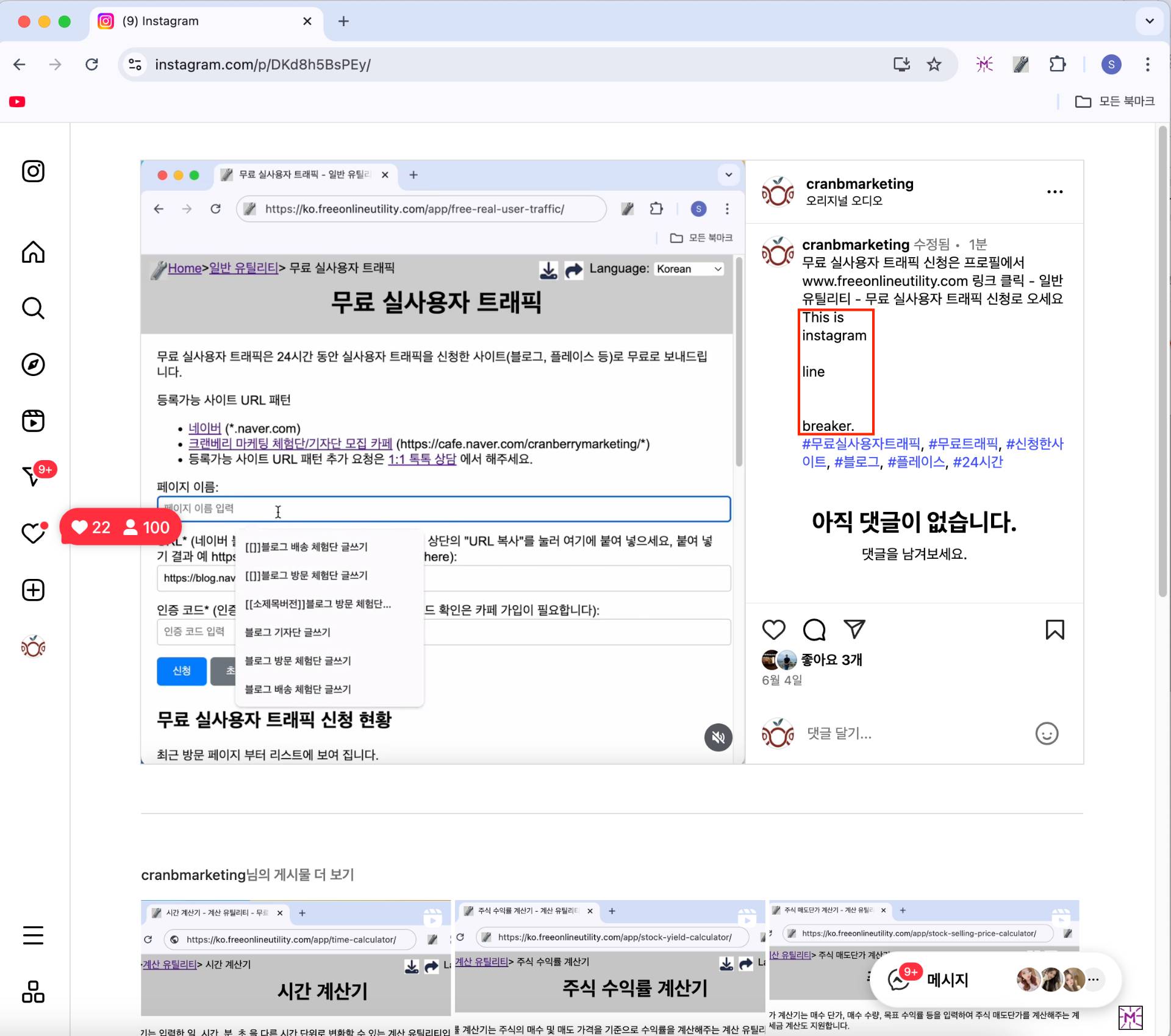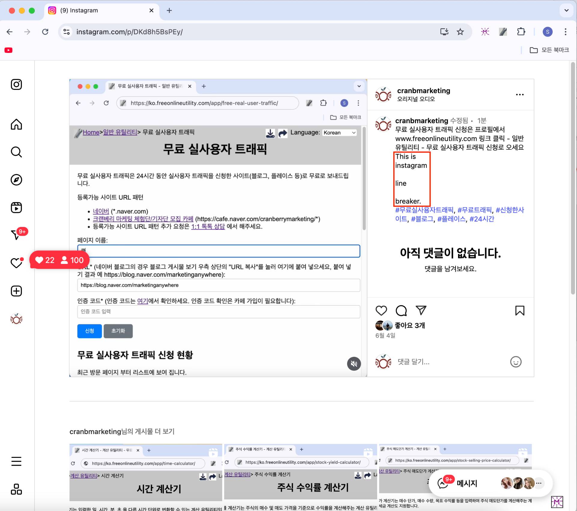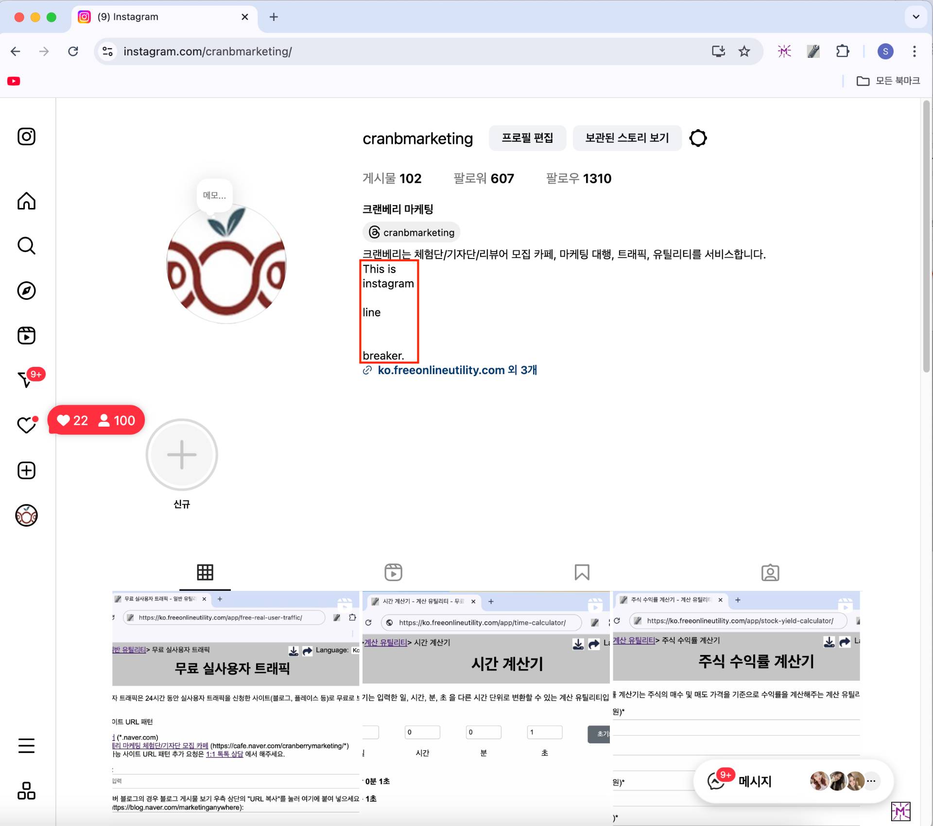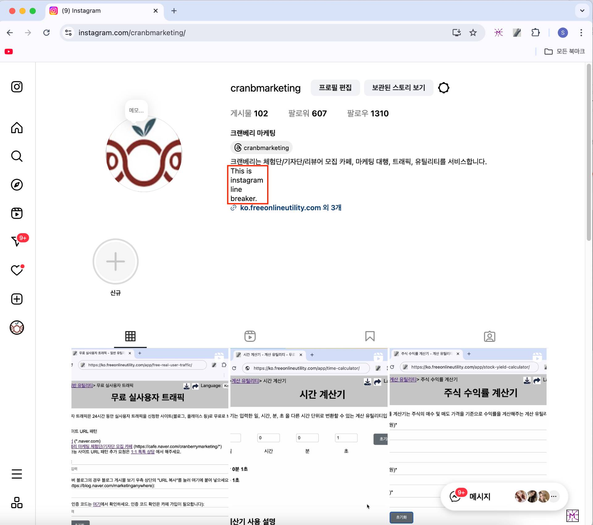 인스타그램 줄 바꿈기는 인스타그램에서 빈줄이 인식되도록 해주는 텍스트 유틸리티입니다.