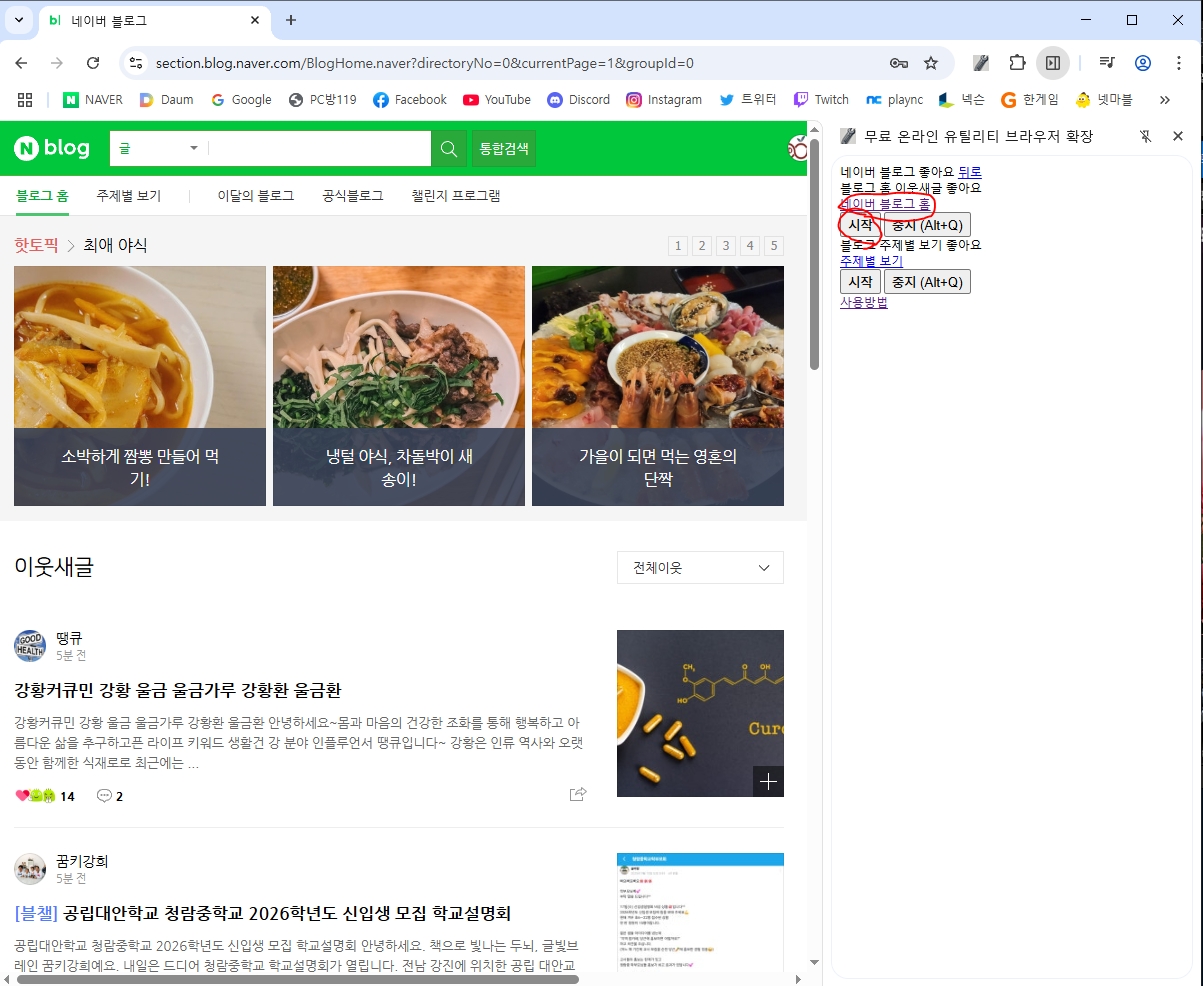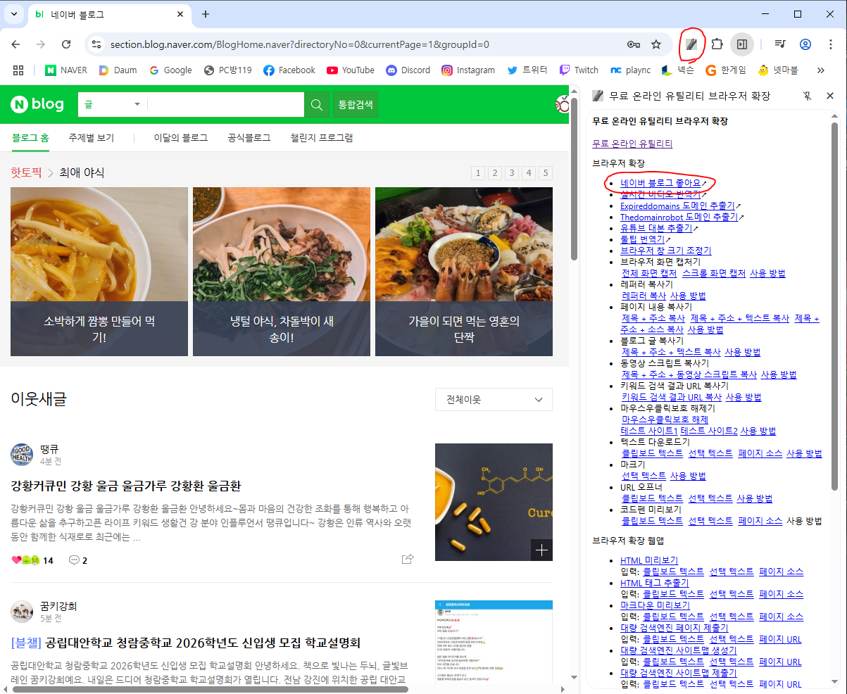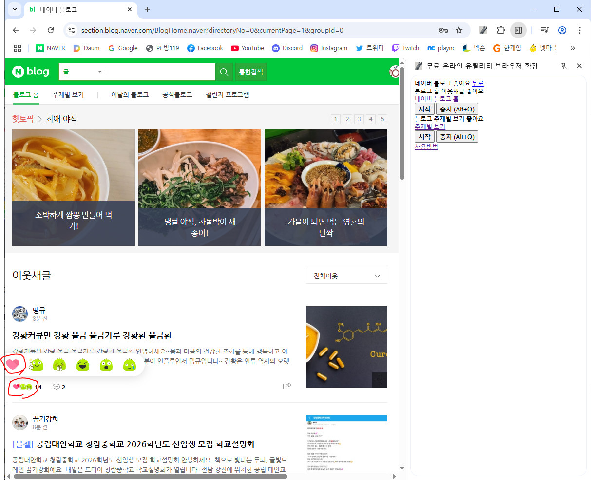 : 블로그 주제별 카테고리의 새글에 좋아요 달기브라우저 확장 설치