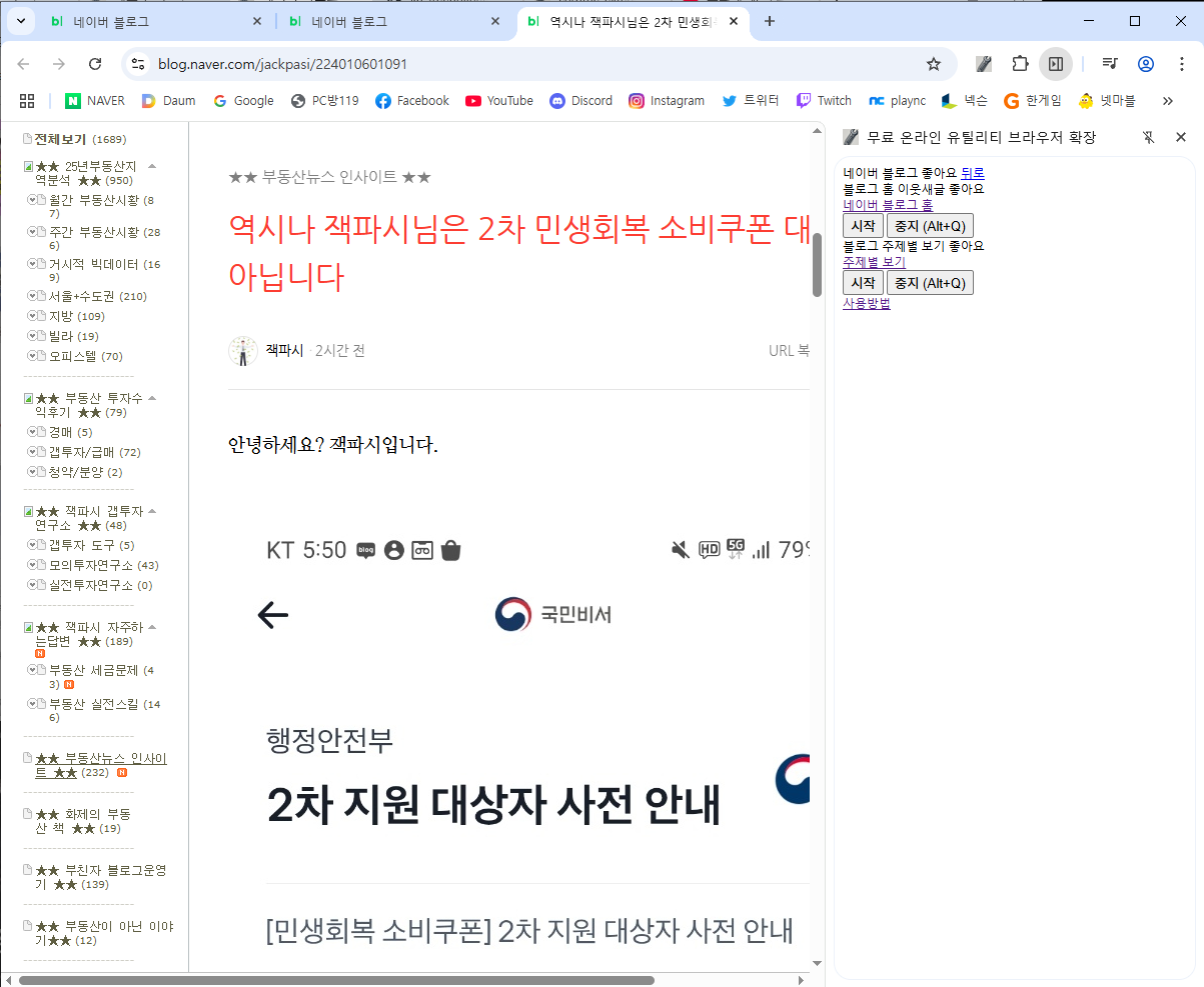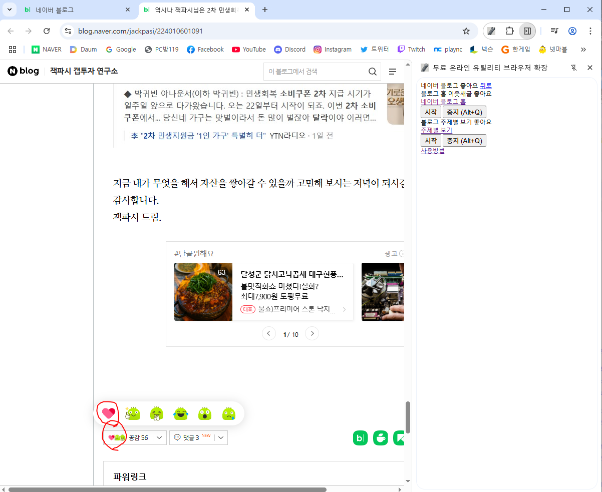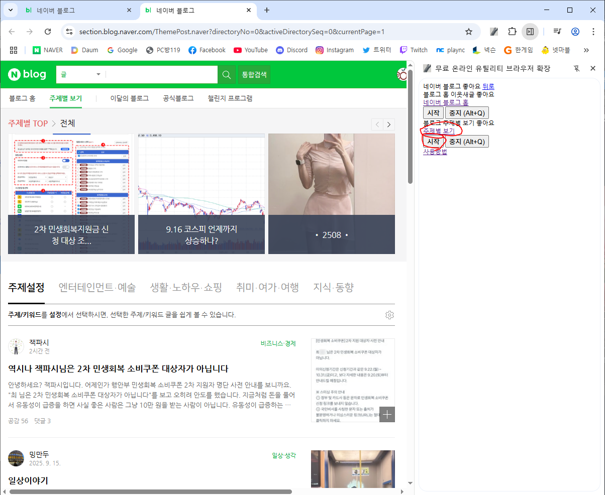 : 블로그 주제별 카테고리의 새글에 좋아요 달기브라우저 확장 설치