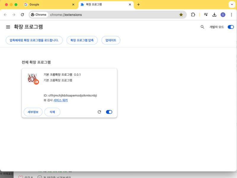 혹은 주소창에 chrome://extensions 입력 후 이동합니다.