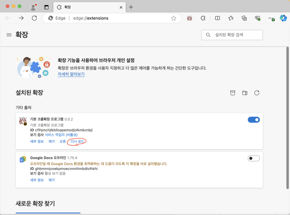 브라우저 확장에서 에러시 리로드해 다시 시작할 수 있는 방법에 대해 설명 합니다.
