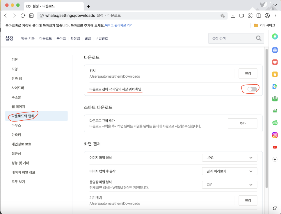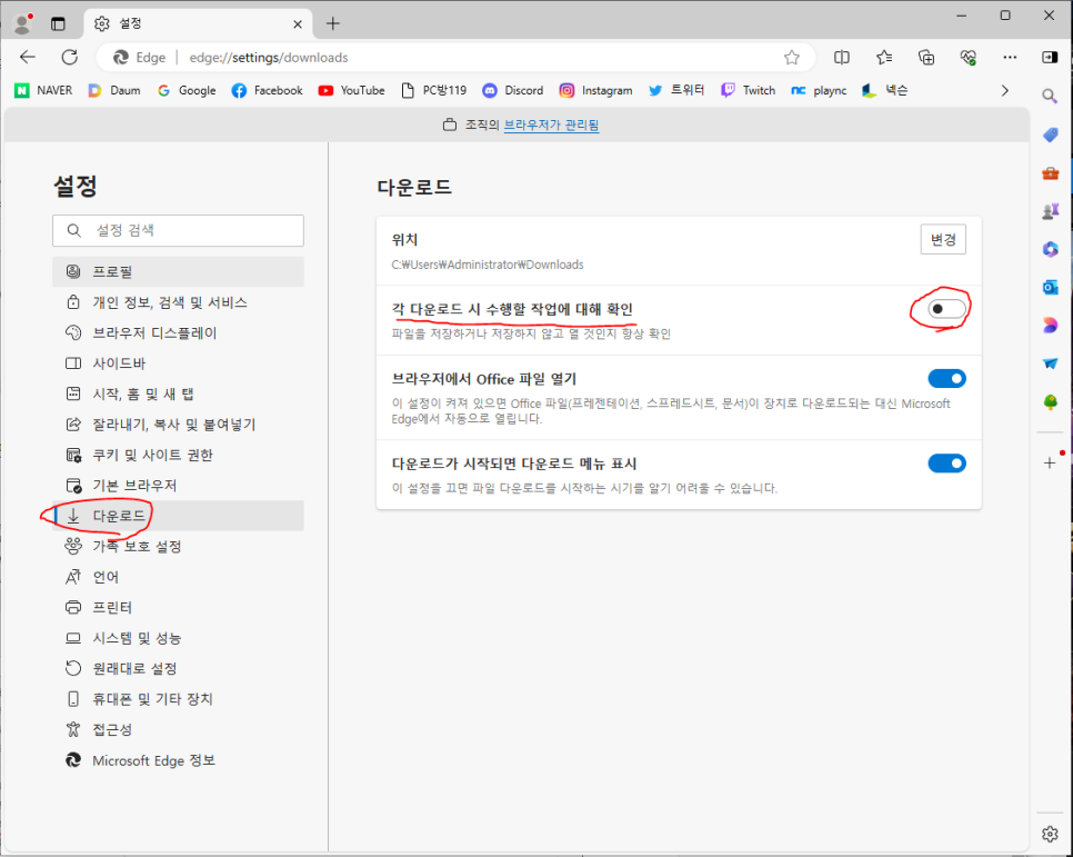 브라우저별로 파일 다운로드 저장 위치 확인 창 보여주지 않고 바로 다운로드하는 방법에 대해 설명 합니다.