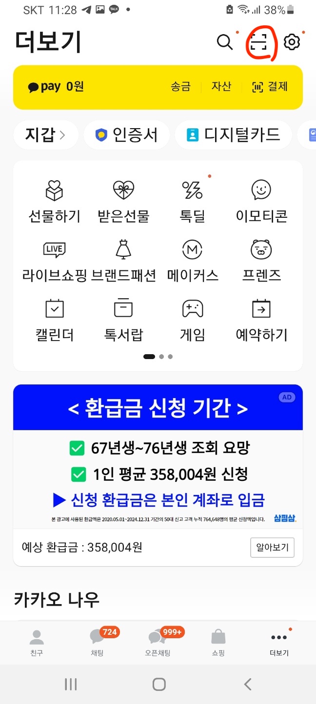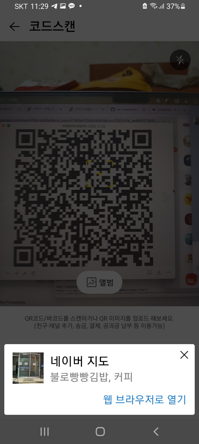 카카오톡에서 자체 지원하는 QR 코드 스캐너를 사용하는 방법에 대해 설명 합니다.
