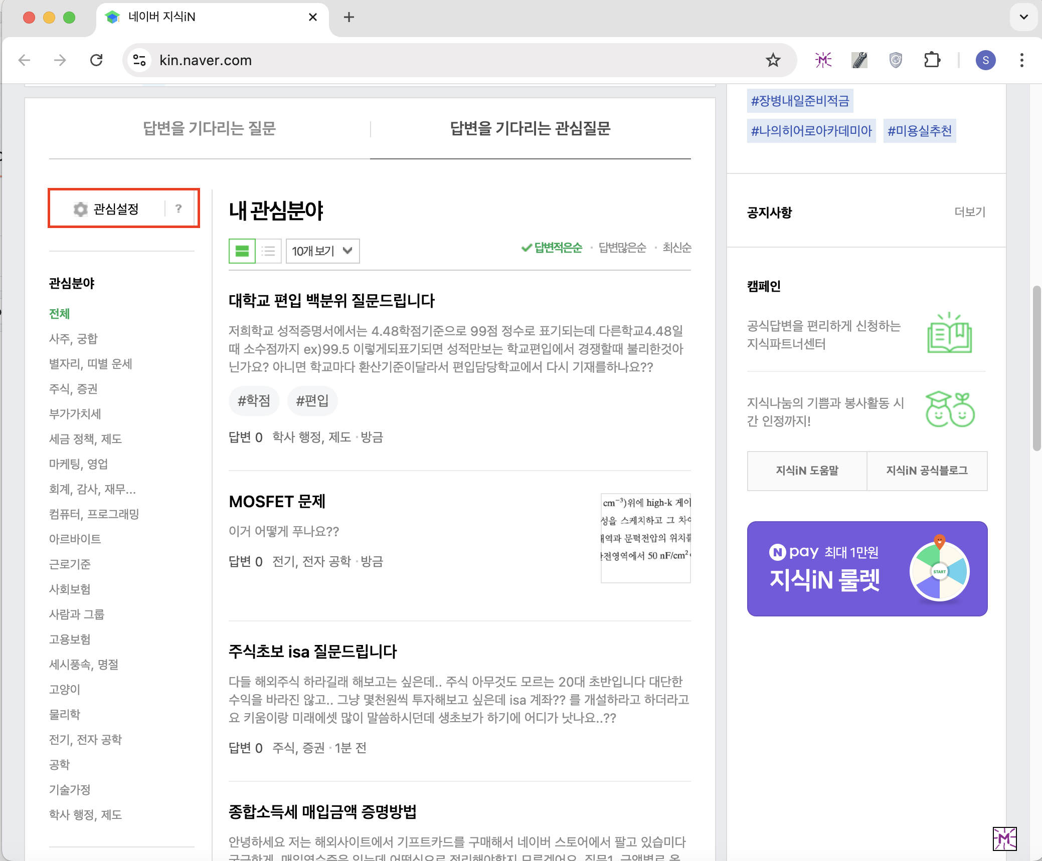 네이버 지식인 관심설정 방법 방법에 대해 설명 합니다.